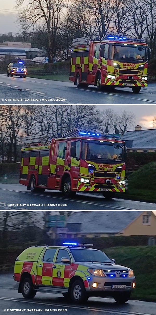 Sligo Fire Service Tubbercurry Fire Station Alpha 1 and Juliet 1 seen Mobile to Incident on Frday 27th March.